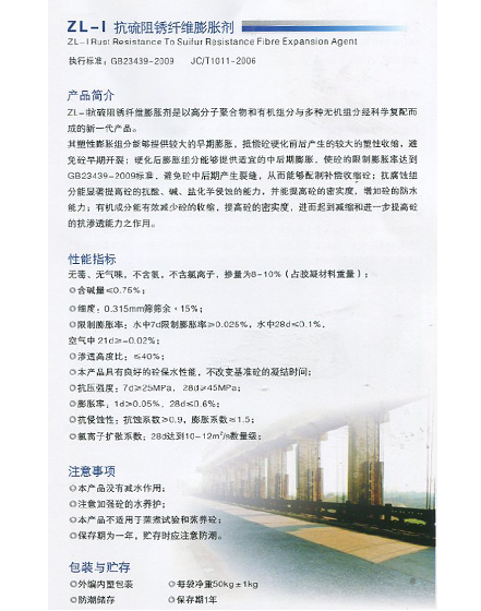ZT-AA化學轉換型膨脹纖維抗裂防水劑
